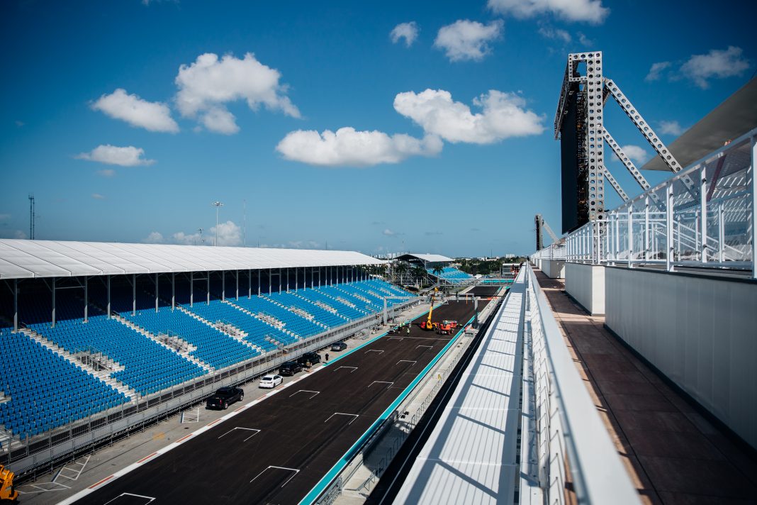 New for this year, the Formula 1® paddock will be located in the center of Hard Rock Stadium and organizers have been working around-the-clock to prepare the venue, transforming the football field to the home of the Miami Open presented by Itaú., and then quickly to the Formula 1® Team Village – all in four months’ time. The natural grass football field was removed immediately following the Dolphins’ final home game of the regular season on January 8, and was replaced with a 6,000-seat temporary grandstand and hard court for the international tennis tournament.